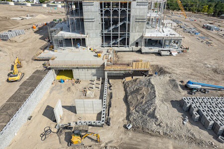 Additional concrete walls have been poured and cured for the basement level of the Provo Utah Rock Canyon Temple where the baptistries will be located. Three additional levels will rise over the basement, housing spaces for the higher ordinances of the temple. The crews are maintaining well-organized staging areas around the structure for the materials being used in construction.