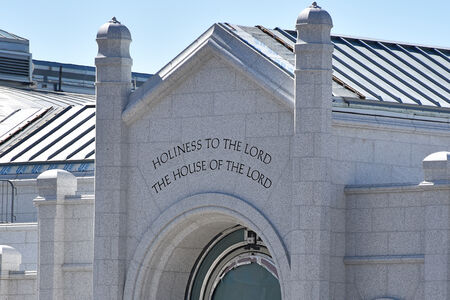 Stone panels inscribed with Holiness to the Lord – The House of the Lord have been installed above the east door of the west entrance pavilion, located north of the Salt Lake Temple. On the south side of the temple, the visitors' pavilions are being furnished, and a new cutaway model of the temple is on display. Elsewhere on Temple Square, the exterior of the Beehive House—one of the official residences of Brigham Young—has been stuccoed and painted.