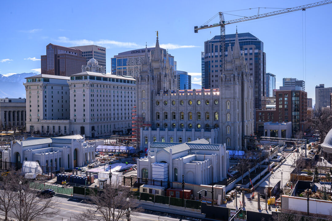 - March 20, 2026 – Temple Square renovation: South tower crane and scaffolding down, art-glass windows up